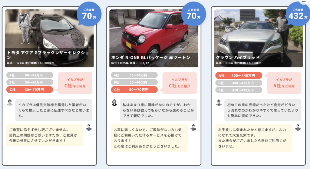 しかし、イカプラはイカプラが比較し、最高額の1社だけを紹介してくれます。